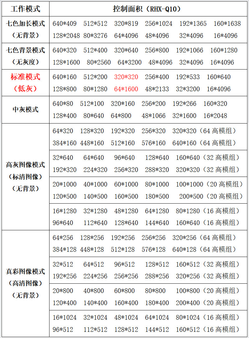 全彩带载面积和Q10完全一样(包括所有工作模式)